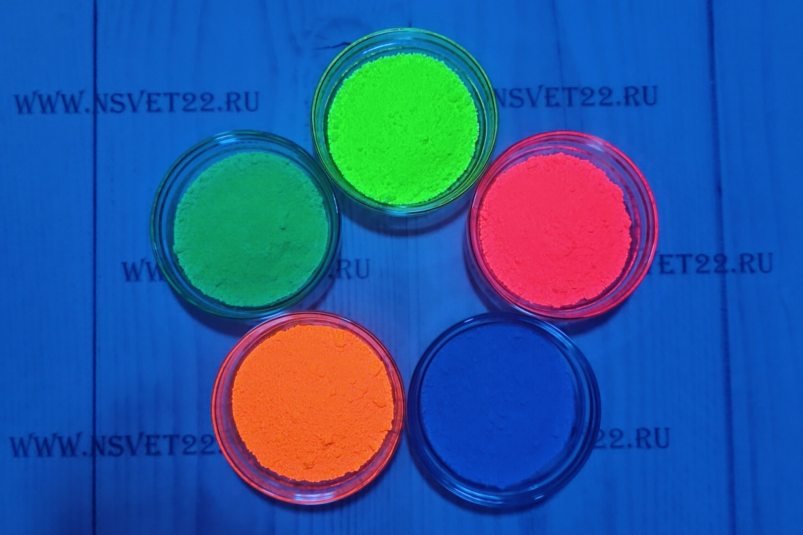 ✓ НАПОМИНАЕМ! Флуоресцентные порошки GR-серии (промышленные) имеют БЛЕДНЫЙ ЦВЕТ (не насыщенный) при дневном свете, но отлично светятся в УФ!